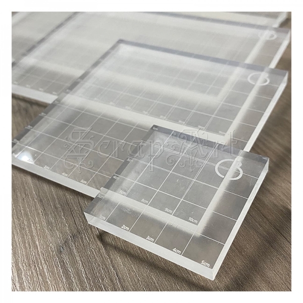 Akrylový blok s mřížkou a metrickým označením pro silikonová a přilnavá razítka.